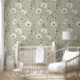 Elegant White Poppies Floral Pattern Mist Green Wallpaper