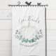 This stylish Thanksgiving kitchen towel is decorated with a watercolor white pumpkin and eucalyptus in soft shades of green.