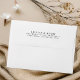 Elegant white wedding envelope with preprinted return address in a classy style font centered on the back flap.