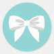 Elegant White Ribbon on Teal Blue Classic Round Sticker