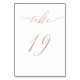 Elegant White Rose Gold Script 19 Wedding Table Number
