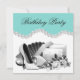 Elegant White Rose Teal Blue Birthday Party Invitation
