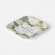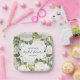 Bridal shower square paper plates feature white roses, green and gold leaves with your details in chic lettering. MATCHING items in our collection.