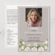 The front features a portrait photo, while the back includes space for the obituary, order of service, and a customizable section for a poem, prayer, or acknowledgment.