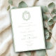 Elegant White & Sage Green Crest Monogram Wedding Invitation