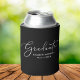 Elegant White Script Black Graduation Can Cooler