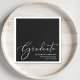 Elegant black graduation party napkins with "Graduate" in a chic white script and the grad's name, school and class year in simple modern white typography.