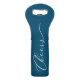 Elegant White Script CHEERS on Ocean Blue Wine Bag
