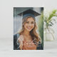 Celebrate your graduate’s milestone with this Modern Script Typography Photo Overlay Graduation Announcement! This stunning dual-sided design seamlessly blends a full-size photo with elegant white script typography, creating a personalized keepsake. Customize the front with the graduate’s name, school, and graduation year overlaid on your chosen image, while the back features a heartfelt, editable message. Perfect for modern, sentimental announcements, this template is ideal for digital sharing or high-quality printed cards. Whether you’re honoring high school, college, or grad school achievements, this design offers effortless sophistication with a nostalgic touch.