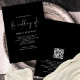 Plain white envelopes are included with paper invitations and will come to fit the invitation size you select. If you don’t need the envelopes, you may choose to not receive them by selecting the dropdown below "Envelopes" and choosing "None." If you’d like to have a design on your envelopes, you can browse all of these available envelopes to find the design that complements your Elegant White Script Qr Code Black Wedding Invitation.