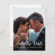 The Elegant White Script Save the Date Photo Announcement postcard features a romantic full-bleed engagement photo paired with flowing white script typography. The intimate composition and timeless style make it ideal for classic, elegant, and romantic weddings. Fully customizable with your photo and wedding details.