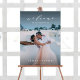 This chic wedding welcome sign features elegant calligraphy with photos front and back. For more advanced customization of this design, please click the Customize Further link to change font, size, and color.