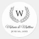 Elegant White & Silver Laurel Monogram Wedding Classic Round Sticker
