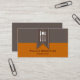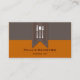 A velvety mocha brown and bold pumpkin colored stripe background adorned with a white knife, spoon and fork logo. Perfect business card for an executive chef, personal chef, caterer, restaurant or other food service company.