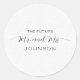 Elegant White Texture Mr. and Mrss Classic Round Sticker