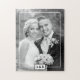 Elegant white thin border and initials wedding jigsaw puzzle. A lovely design for the newlyweds. It features a black and white photo of the couple, a white thin border and the couple's initials in a frame on the bottom center.