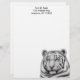 Original fine art design of a white tiger by illustrator Carolyn McFann of Two Purring Cats Studio on customizable letterhead for big cat fans.