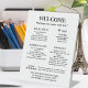Personalized elegant white welcome sign for a rental property, Airbnb, apartment, vacation lodge, cabin, or b&b. Edit the text to add any custom text you'd like to include for the arrival info, house rules, wifi, check-out, and additional information for your guests. Features the name of the place, address, contact number, and email at the bottom.