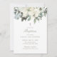 Elegant White Watercolor Flowers Greenery Baptism Invitation