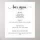 Elegant White Wedding Bar Menu Poster Have you considered displaying a bar menu at your wedding reception? This is a nice extra touch for your day that will look great. It will also stop your guests from asking the bar staff what they have, as you will provide that information for them!