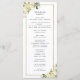 Chic elegant and formal Wedding Program features romantic wedding roses in watercolor vanilla white with hints of blush pink displayed in leafy greenery on a crisp white background. A sparkling golden color geometric crystal-shaped frame provides a trendy touch. Traditional, classic wording provides timeless sophistication. Personalize wedding menu details for your guests in elegant charcoal gray lettering and script. The back of the card has matching design and color and is all about your wedding party. Feel free to contact me at invitationsuites@gmail.com if you have questions regarding this or any of our products