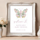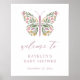This beautiful baby shower welcome sign poster features a hand drawn floral butterfly in lavender, blush pink, golden yellow, and green. Elegant text reads, "Welcome to," and text templates are included for simple personalization. Choose from a variety of poster dimensions - both printed options and instant downloads are available!
