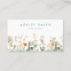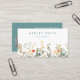 This design features a border of elegant watercolor wildflowers and greenery in shades of green, teal, orange, and yellow. Personalize with your name and business information.