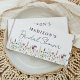 Elegant floral bridal shower Hershey bar favors featuring a bottom border of watercolor wildflowers and foliage in shades of pink, yellow, purple, blue, and green on a white background. Personalize the wildflower bridal shower favors with the bride-to-be's name and an optional thank you message on the back. The personalized wildflower Hershey bar favors are perfect for spring and summer bridal showers.