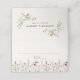 Elegant floral wedding place card featuring watercolor wildflowers and foliage in shades of pink, yellow, purple, blue, and green bordering the bottom of the design with a cream background. The boho floral place cards reverse to display your names and wedding date inside of a rectangle frame of wildflowers. The rustic wildflower wedding place cards are perfect for spring and summer weddings.