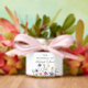 Pretty wildflowers decorate the bottom of this colorful spring wedding favor. Watercolor floral borders are perfect for a garden ceremony outdoors while flowers are in bloom. Elegant script dances above a beautiful orange, purple, yellow, and blue botanical meadow on these personalized honey jars.