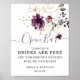 Elegant burgundy wine and faux gold floral bouquet with script open bar and classic typography for wedding sign.