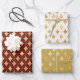 Elegant wrapping paper sheets feature gold metallic retro carnival style harlequin diamonds pattern on gold, white and wine red backgrounds.. Perfect for all sorts of special events and celebrations.