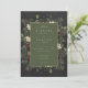 Introducing our enchanting winter wedding invitation, where timeless elegance meets the beauty of the season. The rich charcoal black background, softly distressed with white accents, sets a captivating tone for your special day. In the dark sage green text area, your wedding details stand out, surrounded by a delicate cream frame that adds a touch of refinement. Embrace the spirit of winter with a breathtaking frame of lush greenery, featuring holly adorned with rich red berries, mistletoe with its delicate white berries, and the timeless allure of green pine. Created by Simply Farmhouse Press.