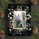 Elegant Winter Botanical Greenery Black One Photo Holiday Card