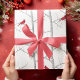 Elegant Winter Botanical Red Cardinal Birch Tree Wrapping Paper