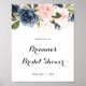 This elegant winter floral bridal shower welcome poster is perfect for a modern wedding shower. The design features beautiful hand-painted dark blue, blue, navy, pink , blush, gold flowers and green foliage, bunched into elegant bouquets.