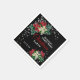 Stylish Christmas party Floral Poinsettia napkins. Featuring a black background decorated with festive floral watercolor red and white poinsettias and strings of lights. The perfect table decor for your holiday season All text can be customized then personalize with a name and date of the party. Add your business/ company or family name. Background color can be changed if required. matching welcome board available in my store