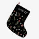 Elegant Winter Greenery Botanical Black Large Christmas Stocking