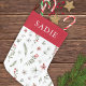 This elegant Christmas stocking features a beautiful pattern of watercolor eucalyptus, berries, and foliage over a classic white background. Customize this stocking with your own name or initials. Makes a wonderful gift for family and friends!