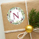 Elegant Winter Greenery Burgundy Monogram Wreath Classic Round Sticker