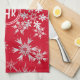 Elegant Winter Snowflakes | Red Background Kitchen Towel