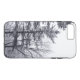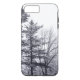 Safeguard your iPhone 8 Plus/7 Plus from shocks with an impact resistant Case-Mate Tough case featuring an elegant black and white photograph of snow-covered trees. The treetops form a strong diagonal with the tallest tree starting at the upper left corner of the image and the shortest tree at the bottom half of the right edge. The sky above them is white.