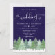 Winter Woodland Navy Blue Wedding Invitation with Watercolor Fir Trees, Script Typography & QR Code RSVP