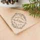This design features your address in a classic curved text with your family name in an elegant handwritten calligraphy script font. An elegant wreath is wrapped around the address.
