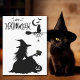 Fly into a frightfully fun Halloween night! Send family and friends an elegant , modern Halloween greeting. This design captures the eerie magic of the season. Our design features a pretty witch sitting down and reading her tarot cards, while her black cat sits quietly on her broomstick hanging from the ceiling under the moon lit sky. The black bats flutter in the background. Card is titled “Happy Halloween”, perfect for sharing spooky season cheers. Crafted with a playful, erie charm, it’s ideal for friends, family, or anyone who loves a good Halloween toast.Flip the card over for a customizable option to add the sender's name, address, and a personal message for a unique, bone chilling keepsake they’ll treasure. It’s the perfect blend of playful and spine-chilling! Let the frights begin!