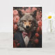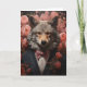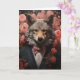 An elegant wolf in a suit with pink flowers blank inside all occasions greeting card