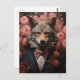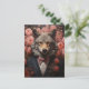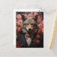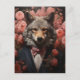 An elegant wolf in a suit with pink flowers blank inside all occasions greeting card