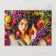 Elegant woman with pomegranate grapes and floral c postcard
