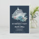 Elegant retirement party cruise ship invitation for women. Personalize it with her name and the party details including the date, cruise line, departure port, RSVP information, any any other info needed. Design with a watercolor boat and beautiful flowers on a navy blue background and silver details.