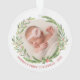 This beautiful baby's first Christmas acrylic ornament features a watercolor holiday greenery wreath with red berries. Personalize with a name, year and photo. Makes a wonderful keepsake for years to come. SAMPLE PHOTO OF BABY IS NOT INCLUDED. REPLACE WITH YOUR OWN PHOTO BEFORE ORDERING.